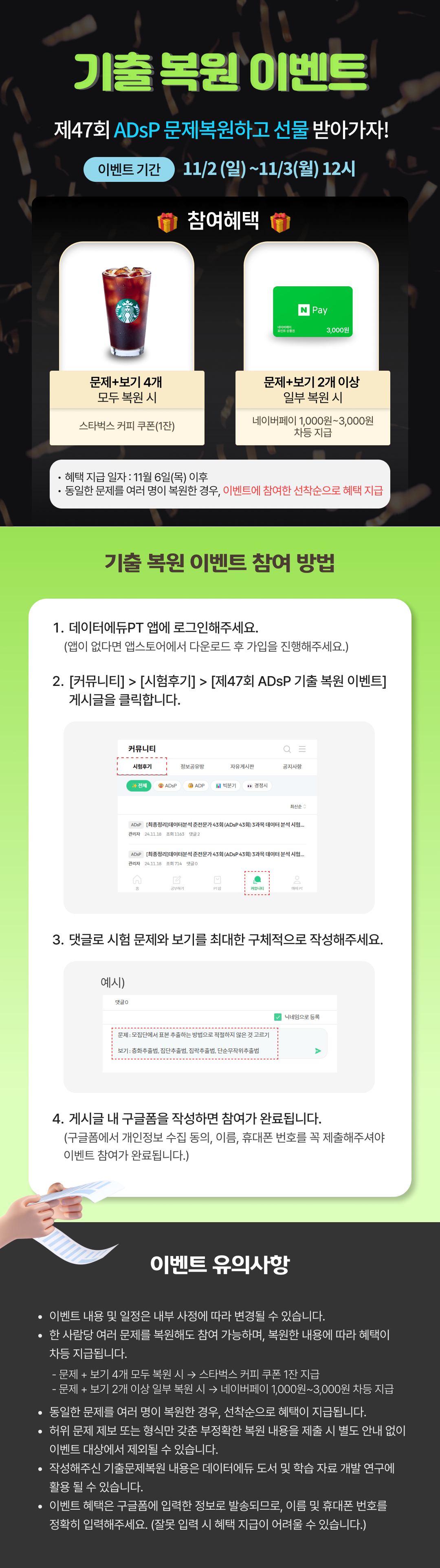 -문제 + 보기 4개 모두 복원 시 → 스타벅스 커피 쿠폰 1잔 지급