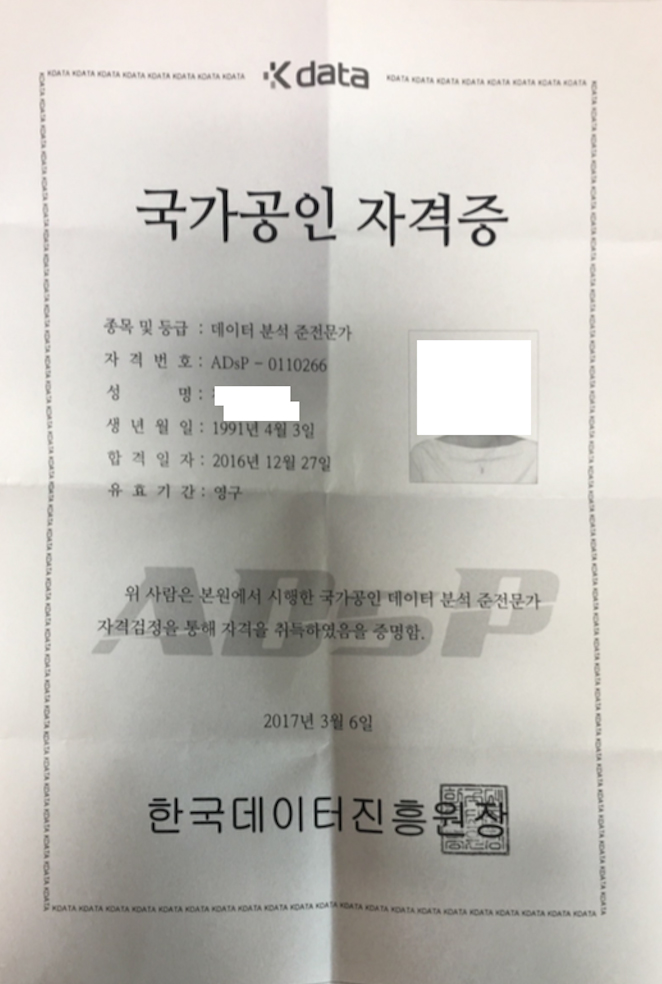 하지만 데이터분석준전문가(ADsP) 11회 시험 첫 응시에 합격하였고,